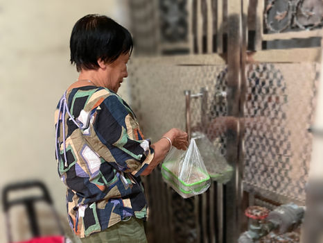 阿二與年邁的丈夫、姐姐同住,三人靠微薄積蓄生活,日常花費要精打細算。作為主要照顧者,她每日又需忙於打理家務。「有飯拿很開心,有得食又不用辛苦買餸煮飯。」她回憶第一次領取熱飯時的感動。自此,她每天都會準時來取午餐和晚餐。